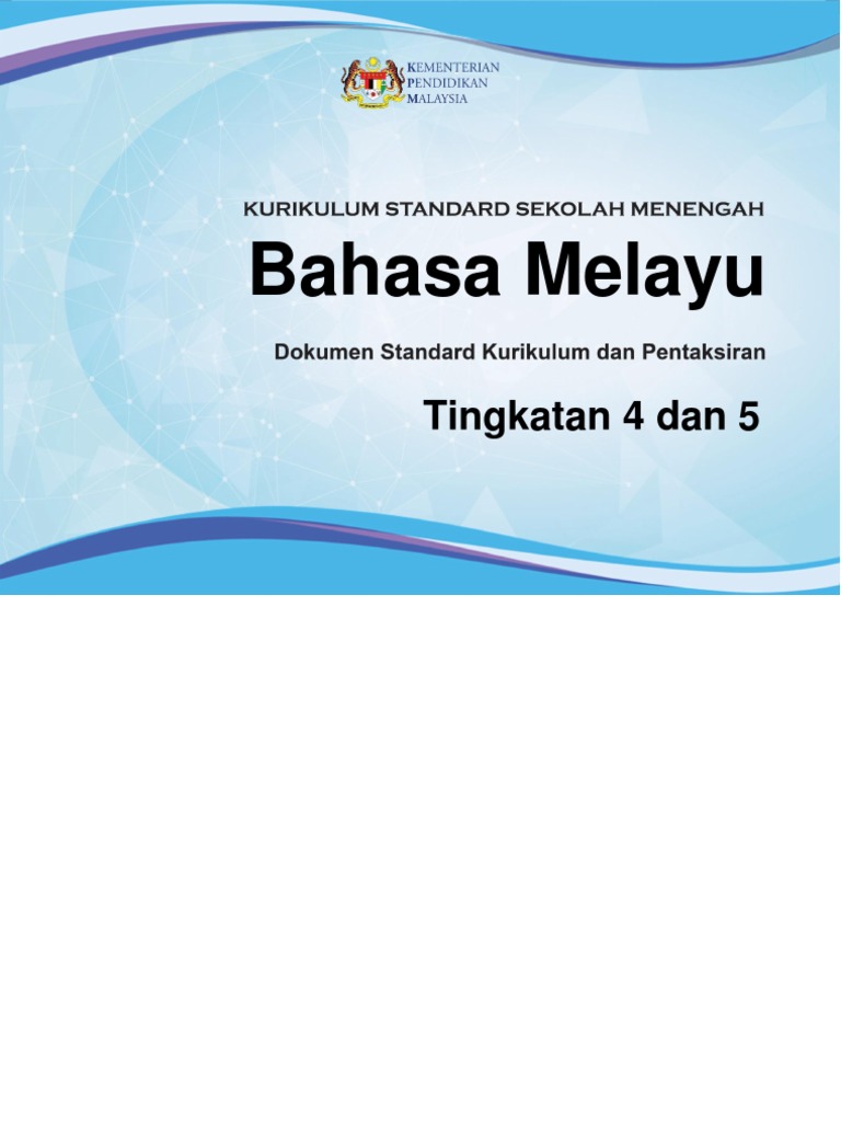 Dskp kssm bahasa iban tingkatan 4 dan 5. Untuk merealisasikan matlamat DSKP KSSM Bahasa Melayu tercapai guru perlu memastikan setiap SP diajar menggunakan teknik kaedah dan strategi yang sesuai seterusnya menentukan tahap penguasaan murid dengan merujuk standard prestasi yang ditetapkan. Interested in flipbooks about DSKP KSSM BAHASA MELAYU TINGKATAN 4 5.